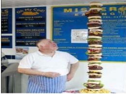 據英國《每日郵報》5月5日報道,英國一家外賣店的老板日前成功做出了一個5英尺4英寸(約1.62米)高的巨型漢堡,據稱其刷新了世界最高漢堡的紀錄。 日前,英國蘭開夏郡一家名為“吃貨先生的飲食廣??the Mister Eater's Eating ......