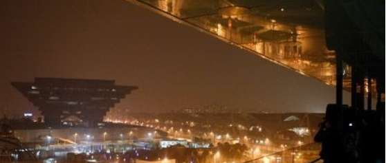 圖為世博園內(nèi)一軸四館將參加“地球一小時(shí)”活動,29日晚熄燈進(jìn)行燈光調(diào)試