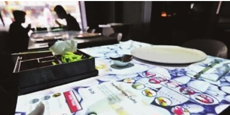 餐廳中為顧客提供電子桌面,桌面上有菜單可供點餐,還有地鐵地圖和游戲,顧客可以邊進食邊娛樂。