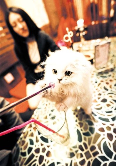 合肥現貓咪“侍應生” 茶餐廳里陪客人玩