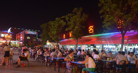 晚上八點左右合肥?街小吃廣場熱鬧非凡