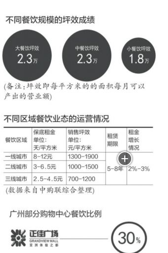 按照徐麗的說法,現在購物中心的餐飲商家只有25%在盈利,另外50%的商家則面臨生存壓力,余下25%則可能有所虧損。“據我所知,有的餐飲品牌在廣州最旺的購物中心,月營業額即便做到200多萬,也沒賺到多少錢。”