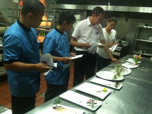 上面這個例子的核心是物盡其用。再給大家舉個例子,在上海很多酒店都有制作白切雞,而我們酒店每天就能用好幾十只。以前,浸雞的水用完后都倒掉了,現在,我們把這些水都收集起來,提清后用來燒煨一些菌類,效果非常好,也可以替代清水用來吊湯。