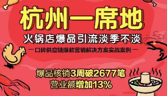 “夏季是火鍋淡季,我們也一直想要開發(fā)應(yīng)季爆品,但又面臨著研發(fā)能力有限、供應(yīng)鏈短板、新品營銷等等難題,并沒有十足的把握。”杭州本地雞窩火鍋 “一席地”的管理人杜帥帥笑言,“沒想到,今年通過與‘口碑貨源市場’合作,火鍋店的業(yè)績竟然實(shí)現(xiàn)了逆勢增長!”