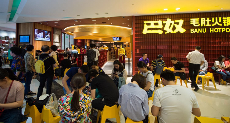 2018年5月16日,在北京東三環(huán)的一處大型購物中心里,巴奴毛肚火鍋開始了第一天的試營業(yè)。當(dāng)天是工作日,晚7點許,商場里人不多,但巴奴門外已經(jīng)有了排隊的顧客。