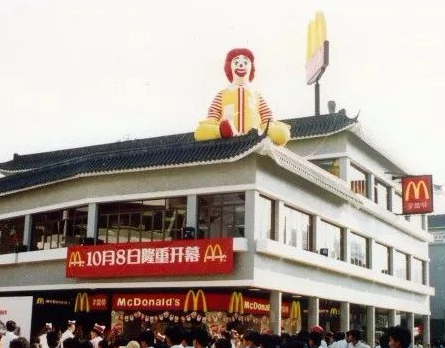 圖:1990年麥當(dāng)勞在深圳開出中國第一家門店的照片。據(jù)悉,由于太過火爆,當(dāng)天深圳餐廳還從香港緊急調(diào)來了500多名員工幫忙。