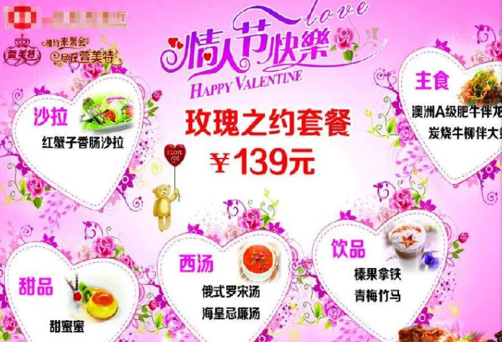 在情人節(jié)期間,餐廳可以推出情人節(jié)專(zhuān)屬套餐。