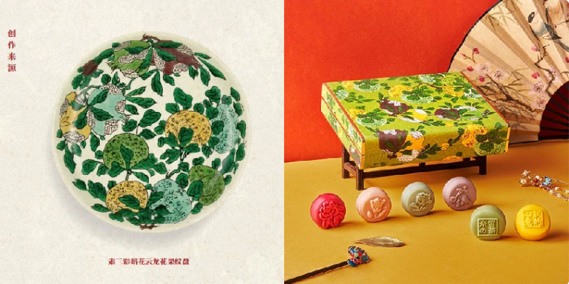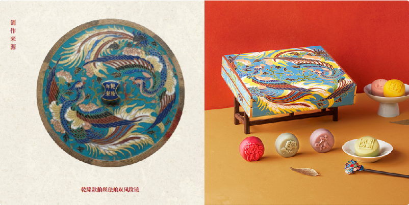 繼去年的“風(fēng)雅頌”主題月餅后,今年,繼續(xù)延續(xù)“中國(guó)風(fēng)”,產(chǎn)品設(shè)計(jì)從古董瓷器、掐絲琺瑯、宋徽宗喜愛的字畫等文物中獲得靈感,將傳統(tǒng)文化融入月餅。僅僅兩款禮盒的產(chǎn)品名稱,就足以使人腦補(bǔ)出中秋月朗、石榴滿園,鳳凰于飛、??其羽的?麗畫面。